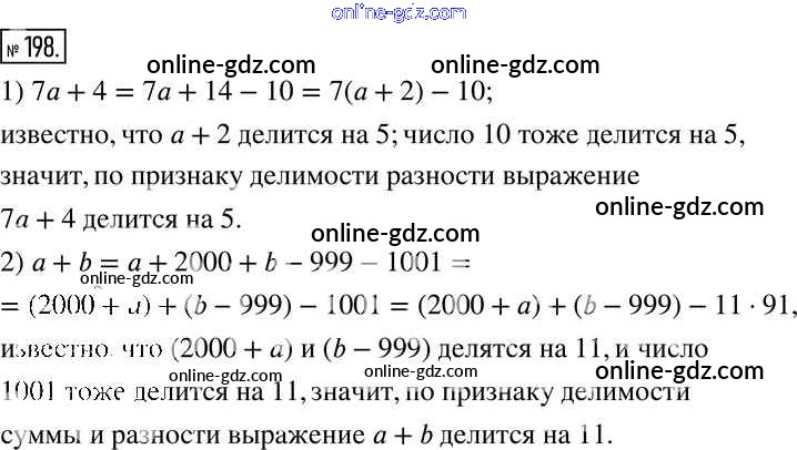 Готовые домашние задания по Математике за 6 класс Учебник Муравин, Муравина Вертикаль 2016 - §7. Свойства делимости произведения, суммы и разности чисел 198