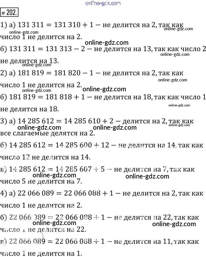 Готовые домашние задания по Математике за 6 класс Учебник Муравин, Муравина Вертикаль 2016 - §7. Свойства делимости произведения, суммы и разности чисел 202