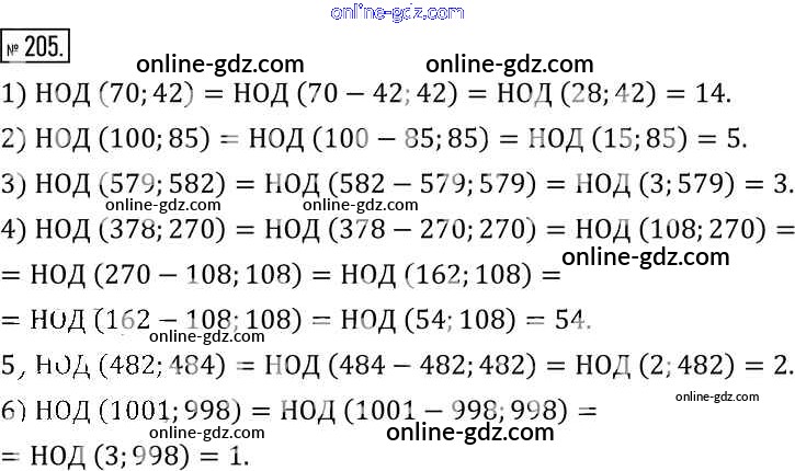 Готовые домашние задания по Математике за 6 класс Учебник Муравин, Муравина Вертикаль 2016 - §7. Свойства делимости произведения, суммы и разности чисел 205