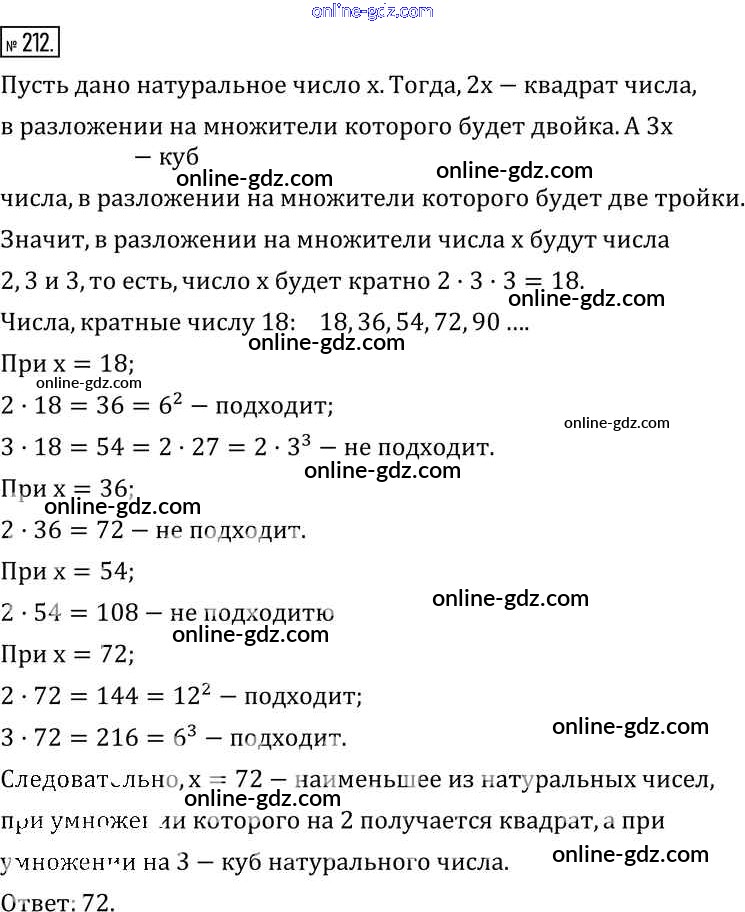 Готовые домашние задания по Математике за 6 класс Учебник Муравин, Муравина Вертикаль 2016 - §7. Свойства делимости произведения, суммы и разности чисел 212