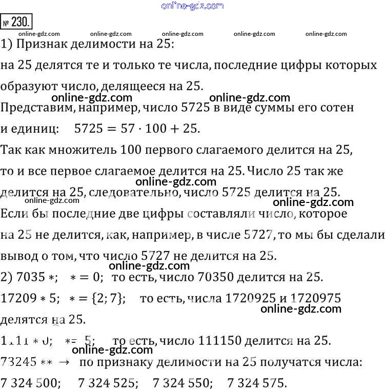 Готовые домашние задания по Математике за 6 класс Учебник Муравин, Муравина Вертикаль 2016 - §8. Признаки делимости натуральных чисел 230