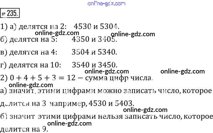 Готовые домашние задания по Математике за 6 класс Учебник Муравин, Муравина Вертикаль 2016 - §8. Признаки делимости натуральных чисел 235