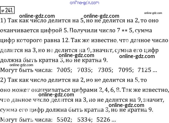 Готовые домашние задания по Математике за 6 класс Учебник Муравин, Муравина Вертикаль 2016 - §8. Признаки делимости натуральных чисел 241