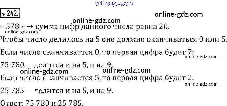 Готовые домашние задания по Математике за 6 класс Учебник Муравин, Муравина Вертикаль 2016 - §8. Признаки делимости натуральных чисел 242