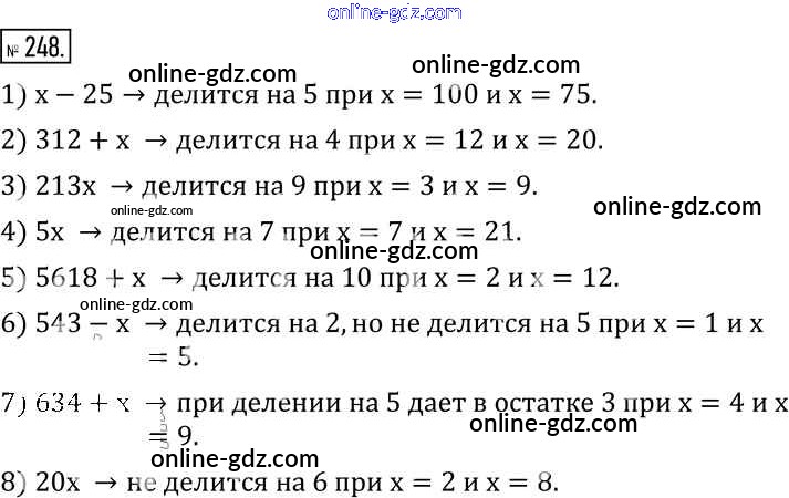 Готовые домашние задания по Математике за 6 класс Учебник Муравин, Муравина Вертикаль 2016 - §8. Признаки делимости натуральных чисел 248