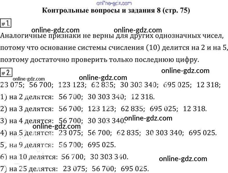 Готовые домашние задания по Математике за 6 класс Учебник Муравин, Муравина Вертикаль 2016 - §8. Признаки делимости натуральных чисел Контрольные вопросы и задания