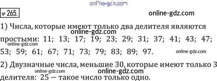 Готовые домашние задания по Математике за 6 класс Учебник Муравин, Муравина Вертикаль 2016 - §9. Простые и составные числа 265