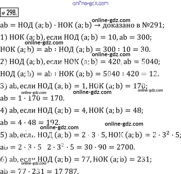 Готовые домашние задания по Математике за 6 класс Учебник Муравин, Муравина Вертикаль 2016 - §10. Взаимно простые числа 298