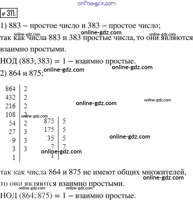 Готовые домашние задания по Математике за 6 класс Учебник Муравин, Муравина Вертикаль 2016 - §10. Взаимно простые числа 311