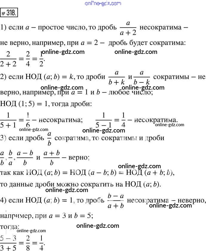 Готовые домашние задания по Математике за 6 класс Учебник Муравин, Муравина Вертикаль 2016 - §10. Взаимно простые числа 318