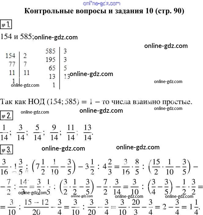 Готовые домашние задания по Математике за 6 класс Учебник Муравин, Муравина Вертикаль 2016 - §10. Взаимно простые числа Контрольные вопросы и задания