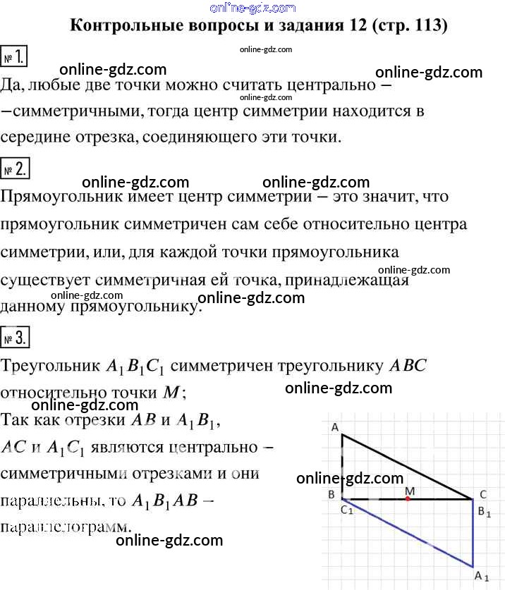 Готовые домашние задания по Математике за 6 класс Учебник Муравин, Муравина Вертикаль 2016 - §12. Центральная симметрия Контрольные вопросы и задания