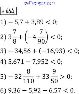 Готовые домашние задания по Математике за 6 класс Учебник Муравин, Муравина Вертикаль 2016 - §15. Сложение и вычитание чисел 464