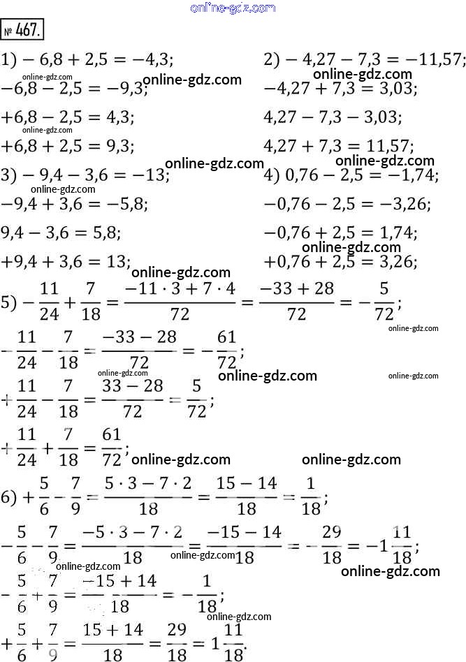 Готовые домашние задания по Математике за 6 класс Учебник Муравин, Муравина Вертикаль 2016 - §15. Сложение и вычитание чисел 467