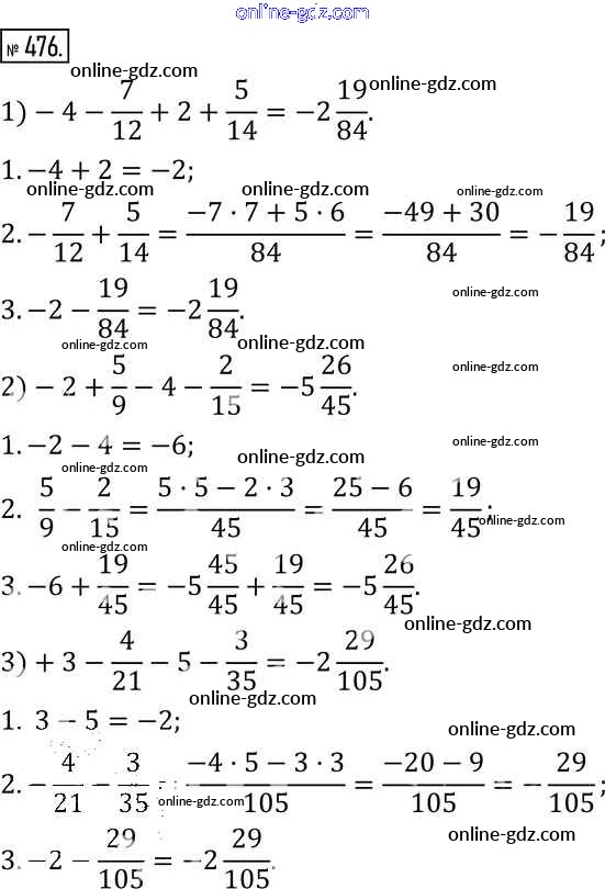 Готовые домашние задания по Математике за 6 класс Учебник Муравин, Муравина Вертикаль 2016 - §15. Сложение и вычитание чисел 476