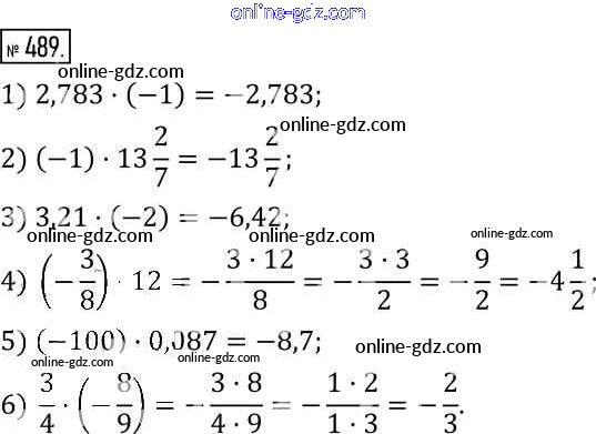 Готовые домашние задания по Математике за 6 класс Учебник Муравин, Муравина Вертикаль 2016 - §16. Умножение чисел 489