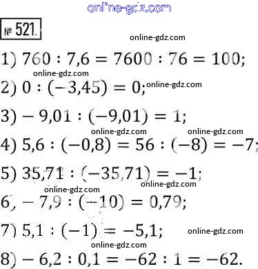 Готовые домашние задания по Математике за 6 класс Учебник Муравин, Муравина Вертикаль 2016 - §17. Деление чисел 521
