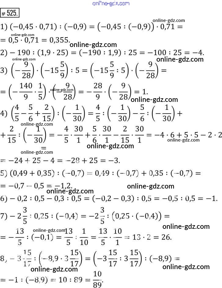 Готовые домашние задания по Математике за 6 класс Учебник Муравин, Муравина Вертикаль 2016 - §17. Деление чисел 525