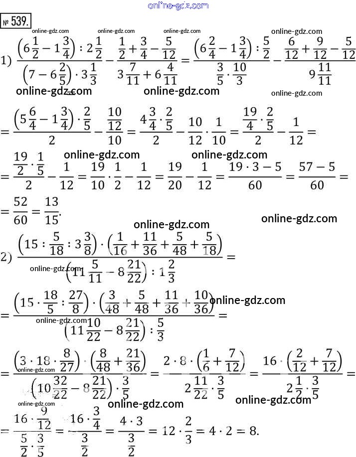 Готовые домашние задания по Математике за 6 класс Учебник Муравин, Муравина Вертикаль 2016 - §17. Деление чисел 539