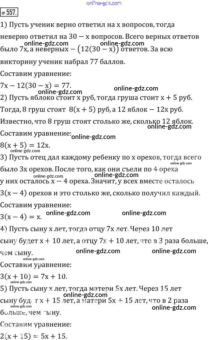 Готовые домашние задания по Математике за 6 класс Учебник Муравин, Муравина Вертикаль 2016 - §18. Решение уравнений 557
