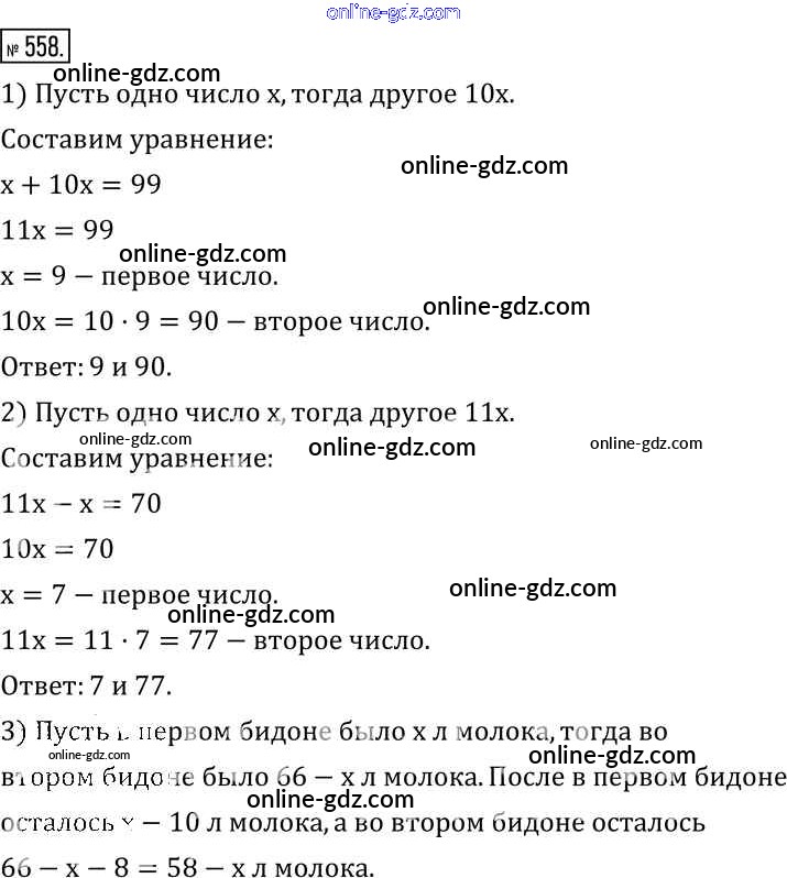 Готовые домашние задания по Математике за 6 класс Учебник Муравин, Муравина Вертикаль 2016 - §18. Решение уравнений 558