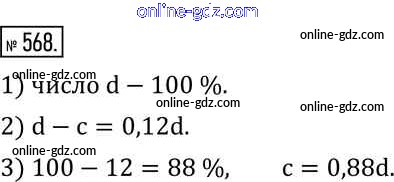 Готовые домашние задания по Математике за 6 класс Учебник Муравин, Муравина Вертикаль 2016 - §19. Решение задач на проценты 568
