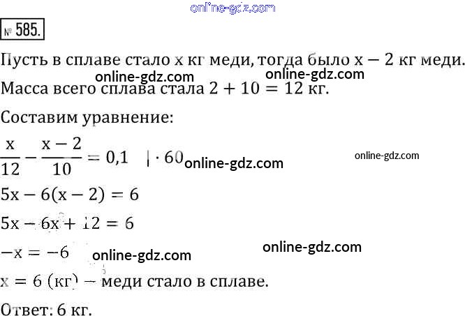 Готовые домашние задания по Математике за 6 класс Учебник Муравин, Муравина Вертикаль 2016 - §19. Решение задач на проценты 585
