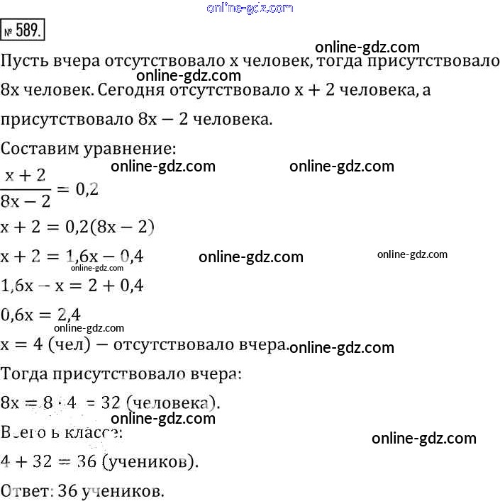 Готовые домашние задания по Математике за 6 класс Учебник Муравин, Муравина Вертикаль 2016 - §19. Решение задач на проценты 589