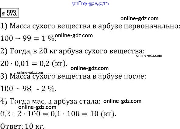 Готовые домашние задания по Математике за 6 класс Учебник Муравин, Муравина Вертикаль 2016 - §19. Решение задач на проценты 593