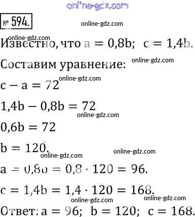 Готовые домашние задания по Математике за 6 класс Учебник Муравин, Муравина Вертикаль 2016 - §19. Решение задач на проценты 594