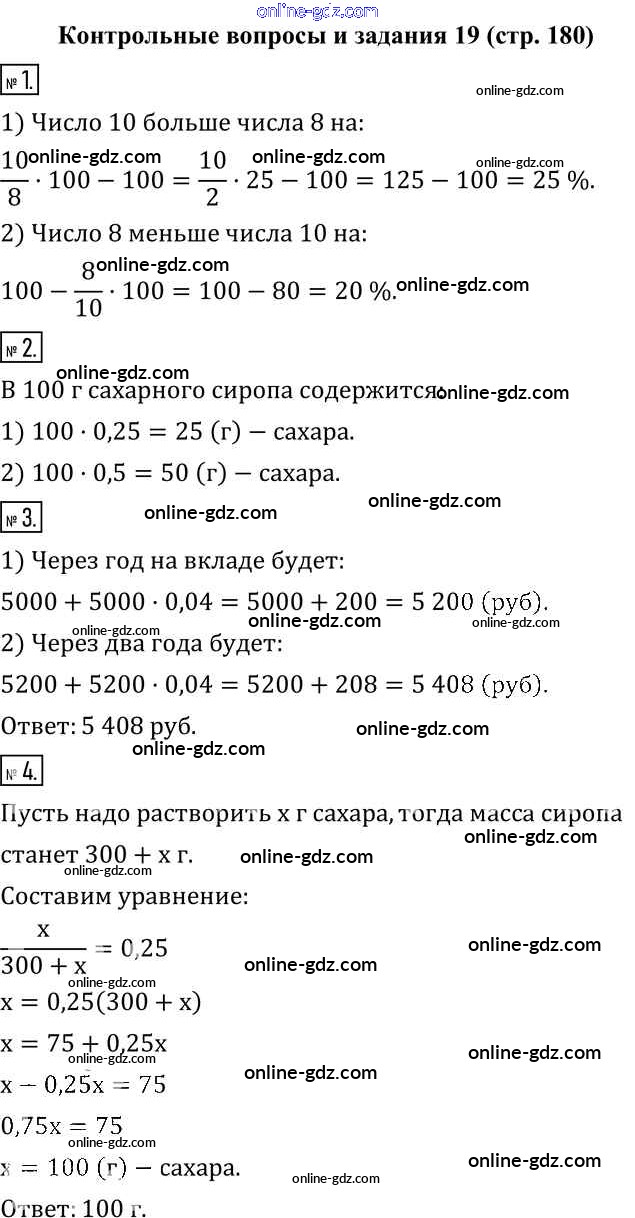 Готовые домашние задания по Математике за 6 класс Учебник Муравин, Муравина Вертикаль 2016 - §19. Решение задач на проценты Контрольные вопросы и задания