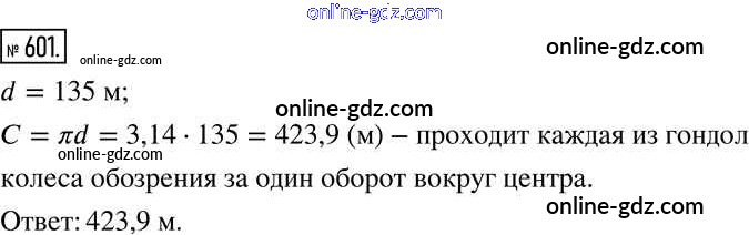 Готовые домашние задания по Математике за 6 класс Учебник Муравин, Муравина Вертикаль 2016 - §20. Длина окружности и площадь круга 601