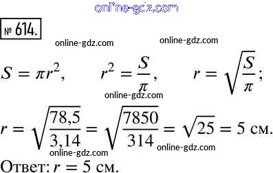Готовые домашние задания по Математике за 6 класс Учебник Муравин, Муравина Вертикаль 2016 - §20. Длина окружности и площадь круга 614