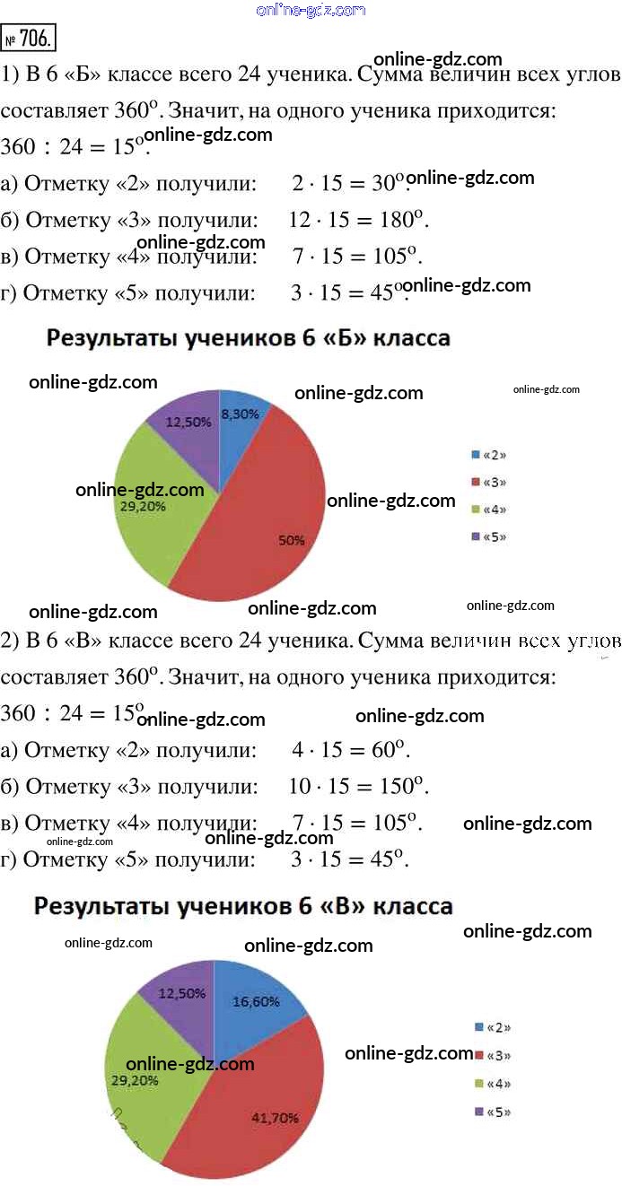 Готовые домашние задания по Математике за 6 класс Учебник Муравин, Муравина Вертикаль 2016 - §24. Диаграммы 706