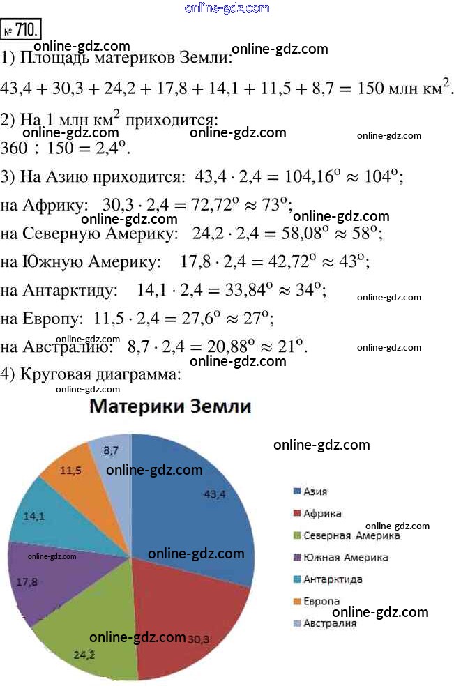 Готовые домашние задания по Математике за 6 класс Учебник Муравин, Муравина Вертикаль 2016 - §24. Диаграммы 710