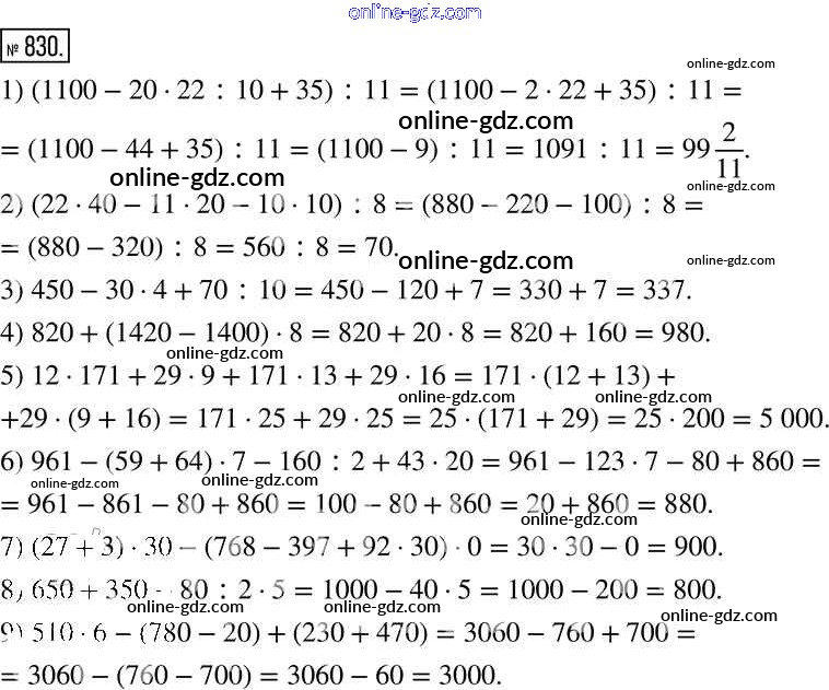 Готовые домашние задания по Математике за 6 класс Учебник Муравин, Муравина Вертикаль 2016 - Вычислительный практикум Повторение 830