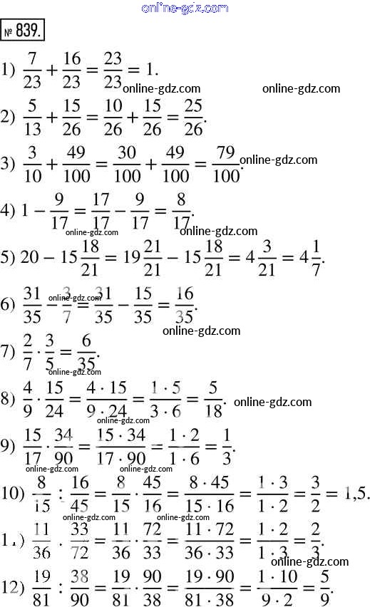 Готовые домашние задания по Математике за 6 класс Учебник Муравин, Муравина Вертикаль 2016 - Вычислительный практикум Повторение 839
