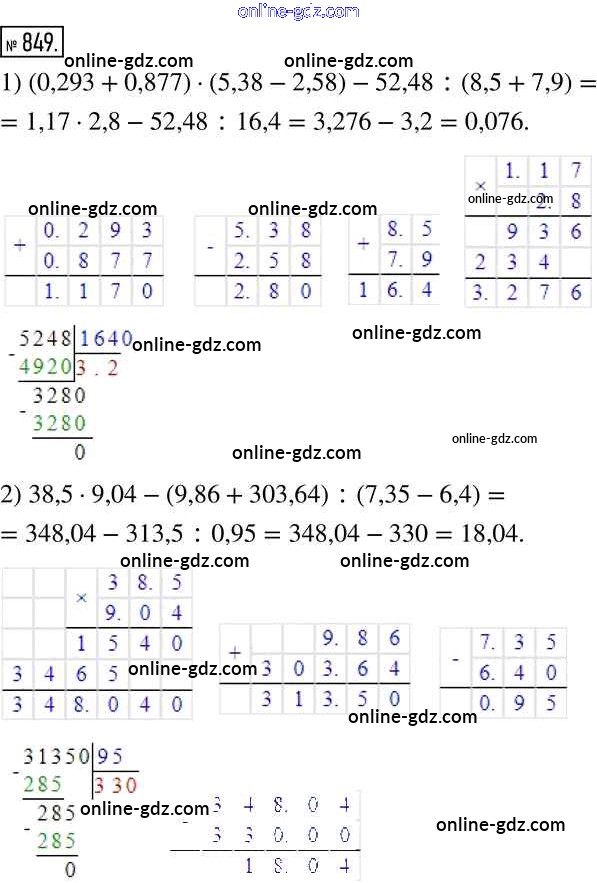 Готовые домашние задания по Математике за 6 класс Учебник Муравин, Муравина Вертикаль 2016 - Вычислительный практикум Повторение 849
