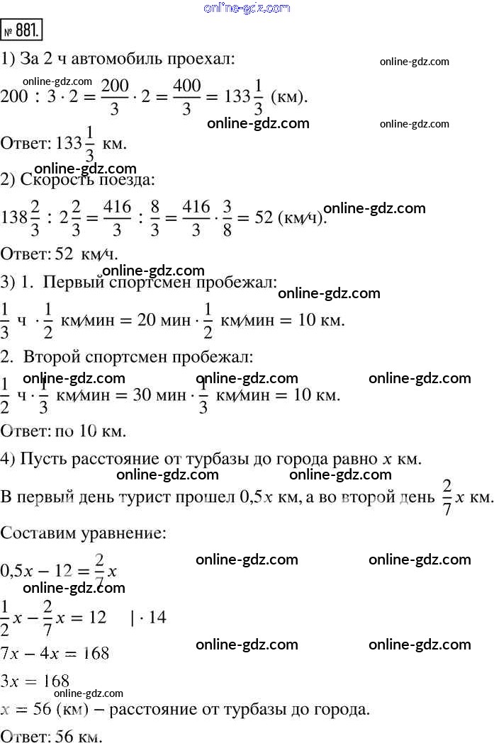 Готовые домашние задания по Математике за 6 класс Учебник Муравин, Муравина Вертикаль 2016 - Практикум по решению текстовых задач Повторение 881