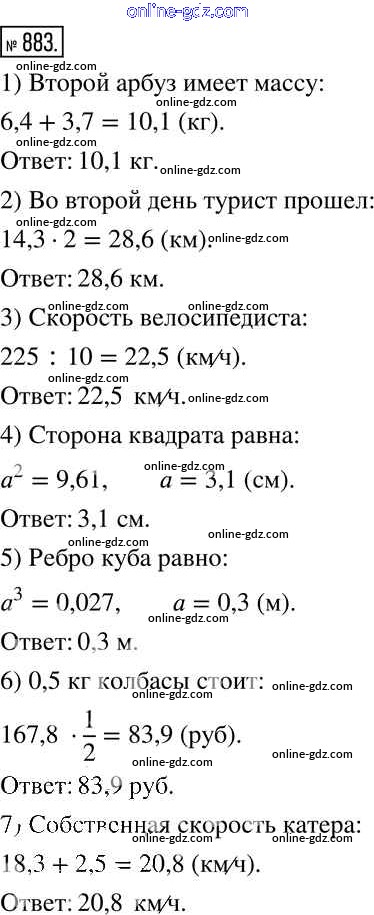 Готовые домашние задания по Математике за 6 класс Учебник Муравин, Муравина Вертикаль 2016 - Практикум по решению текстовых задач Повторение 883