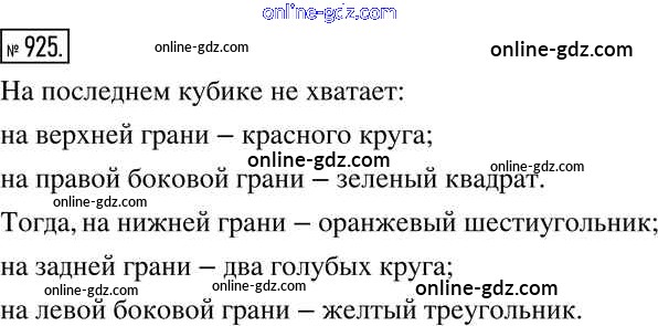Готовые домашние задания по Математике за 6 класс Учебник Муравин, Муравина Вертикаль 2016 - Практикум по развитию пространственного воображения Повторение 925