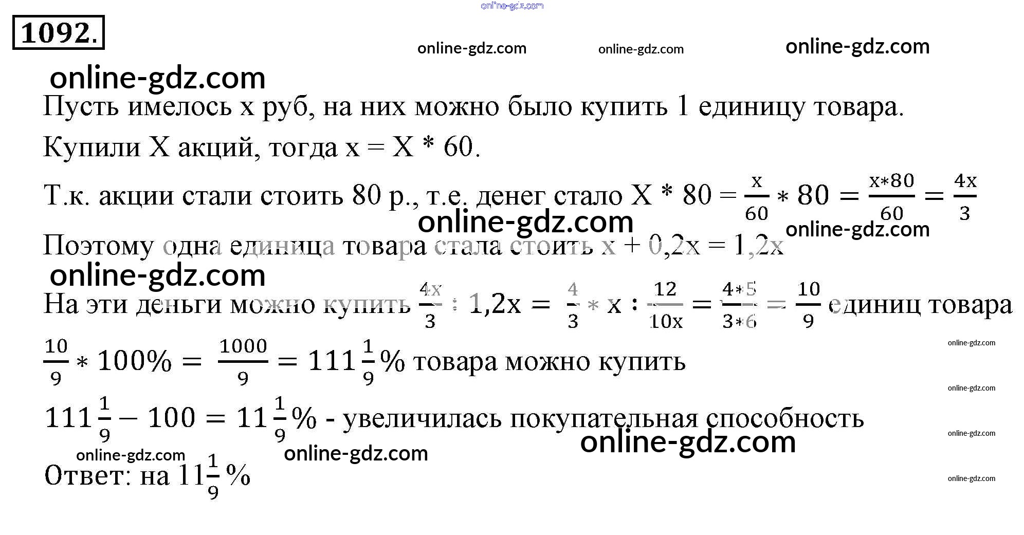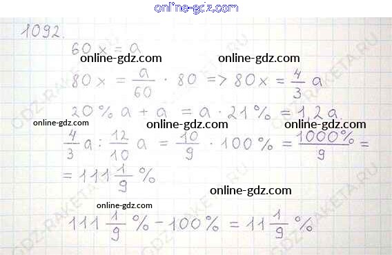 Готовые домашние задания по Математике за 6 класс Учебник Никольский, Потапов МГУ - школе 2014 - Номера 1092