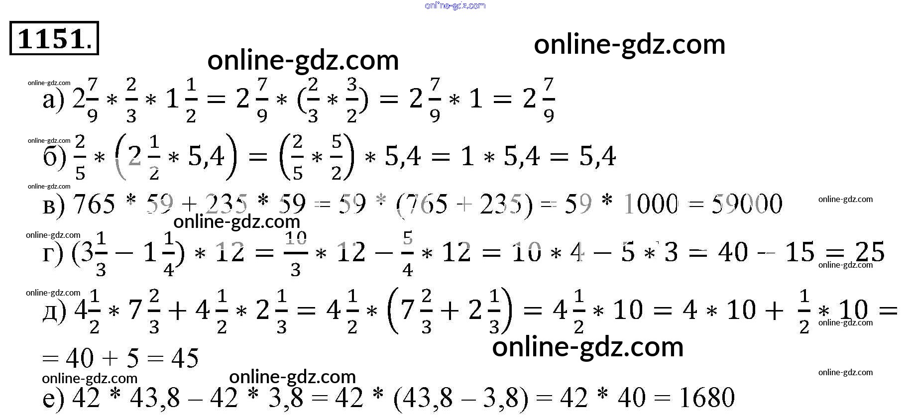 Готовые домашние задания по Математике за 6 класс Учебник Никольский, Потапов МГУ - школе 2014 - Номера 1151