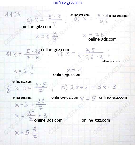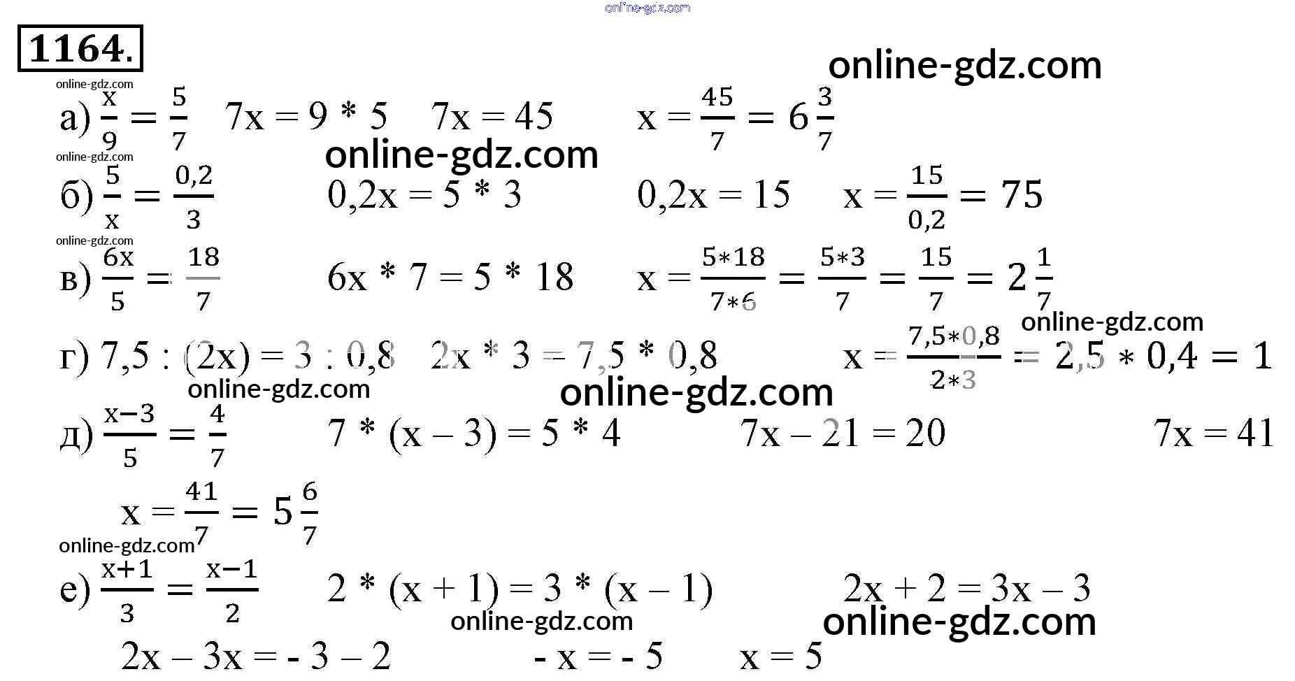 Готовые домашние задания по Математике за 6 класс Учебник Никольский, Потапов МГУ - школе 2014 - Номера 1164