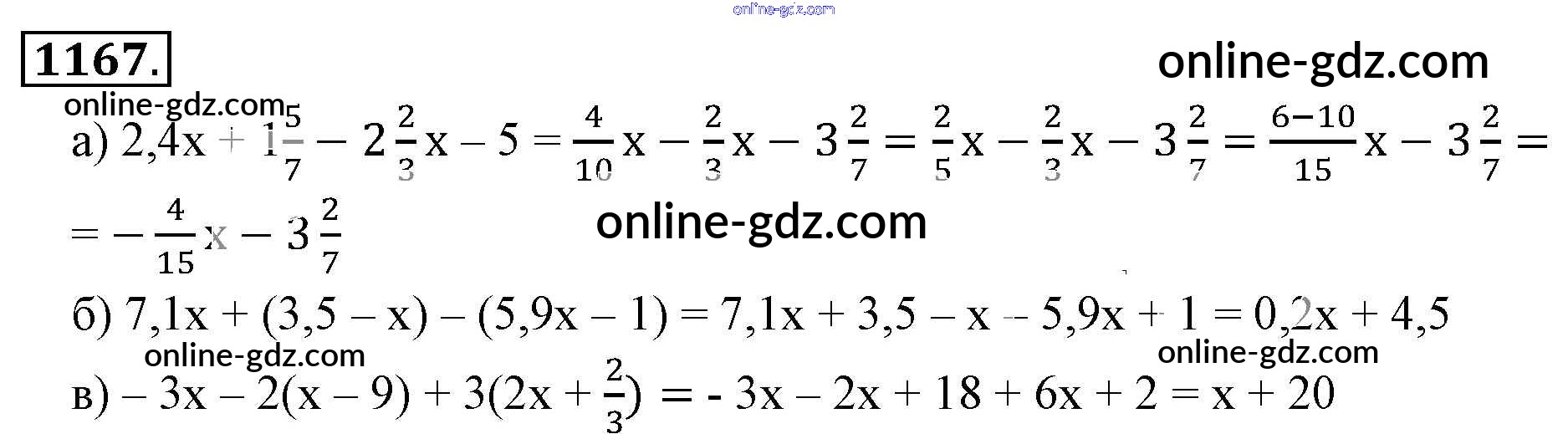Готовые домашние задания по Математике за 6 класс Учебник Никольский, Потапов МГУ - школе 2014 - Номера 1167