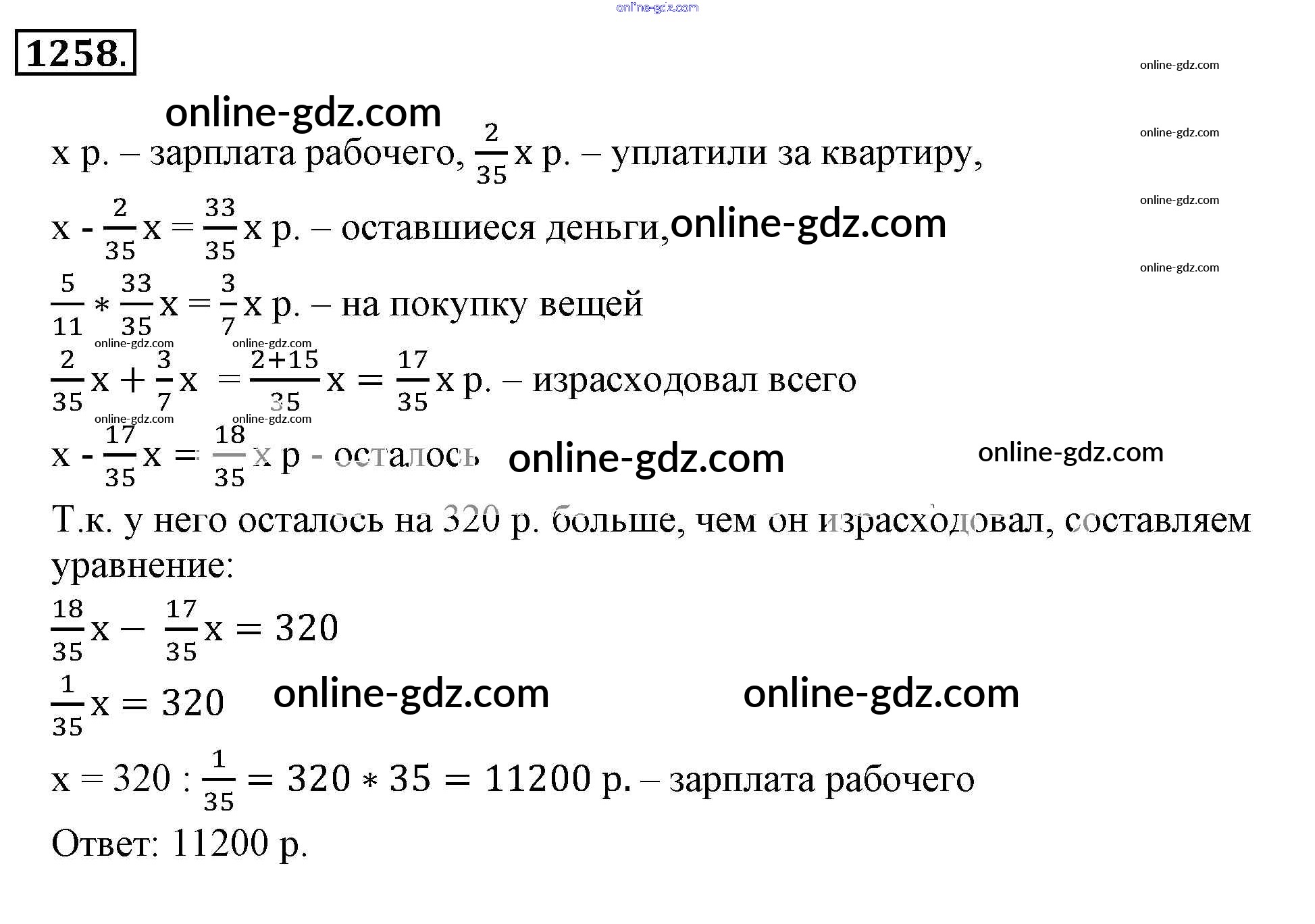 Готовые домашние задания по Математике за 6 класс Учебник Никольский, Потапов МГУ - школе 2014 - Номера 1258