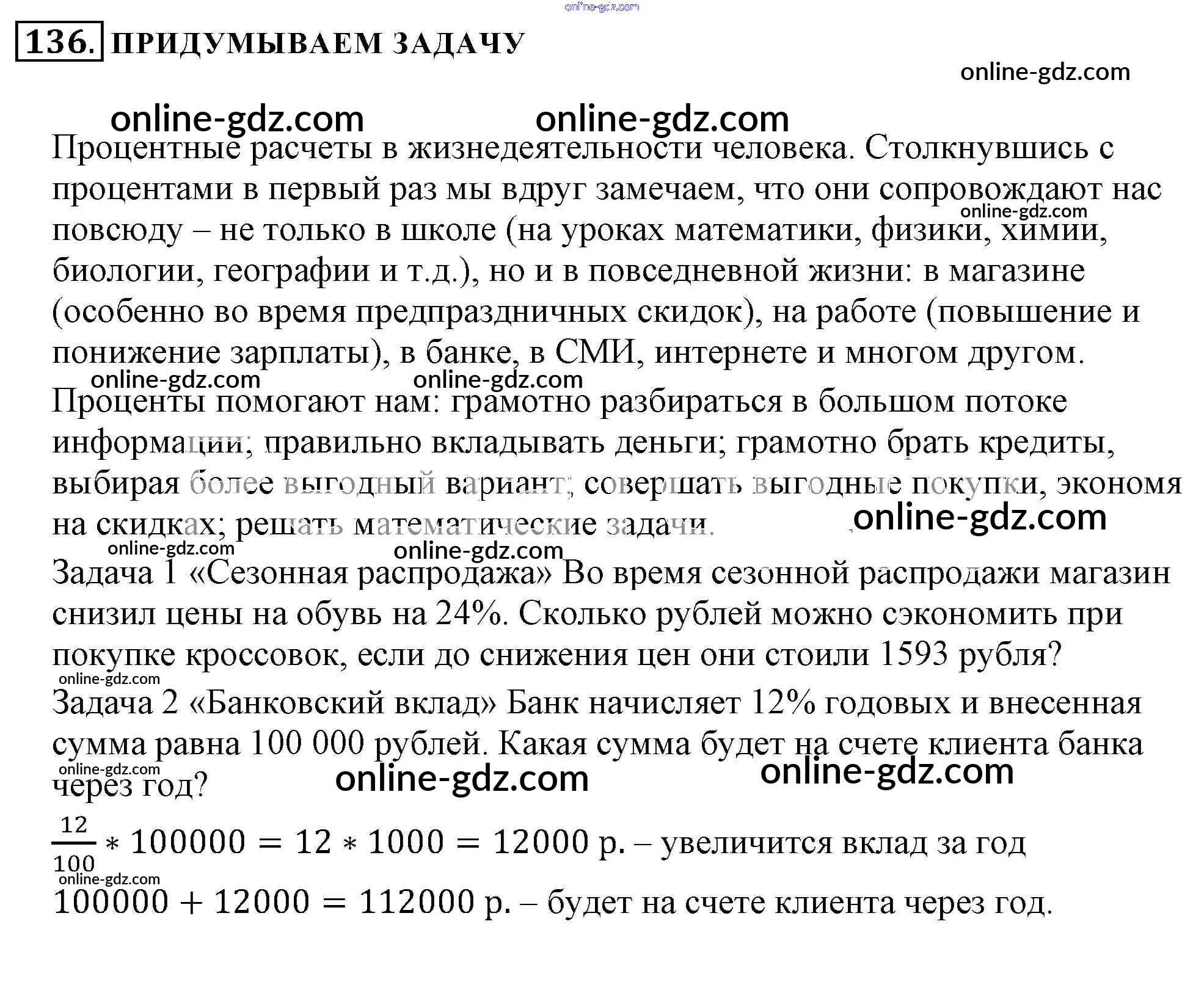 Готовые домашние задания по Математике за 6 класс Учебник Никольский, Потапов МГУ - школе 2014 - Номера 136
