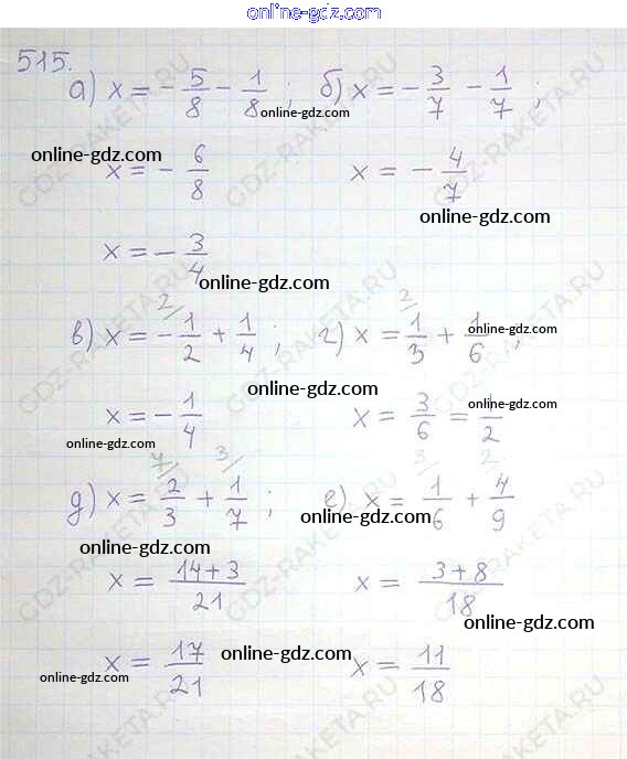 Готовые домашние задания по Математике за 6 класс Учебник Никольский, Потапов МГУ - школе 2014 - Номера 515