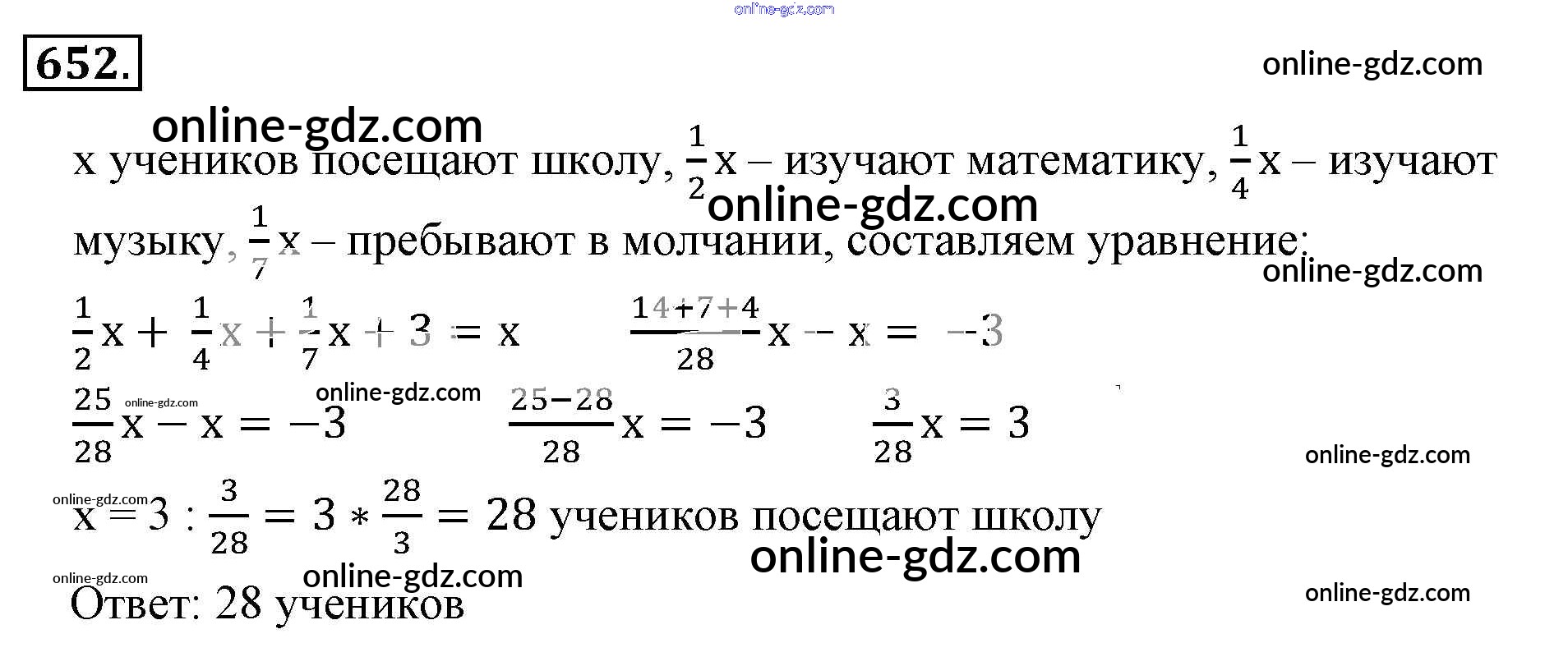 Готовые домашние задания по Математике за 6 класс Учебник Никольский, Потапов МГУ - школе 2014 - Номера 652