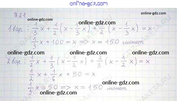 Готовые домашние задания по Математике за 6 класс Учебник Никольский, Потапов МГУ - школе 2014 - Номера 721